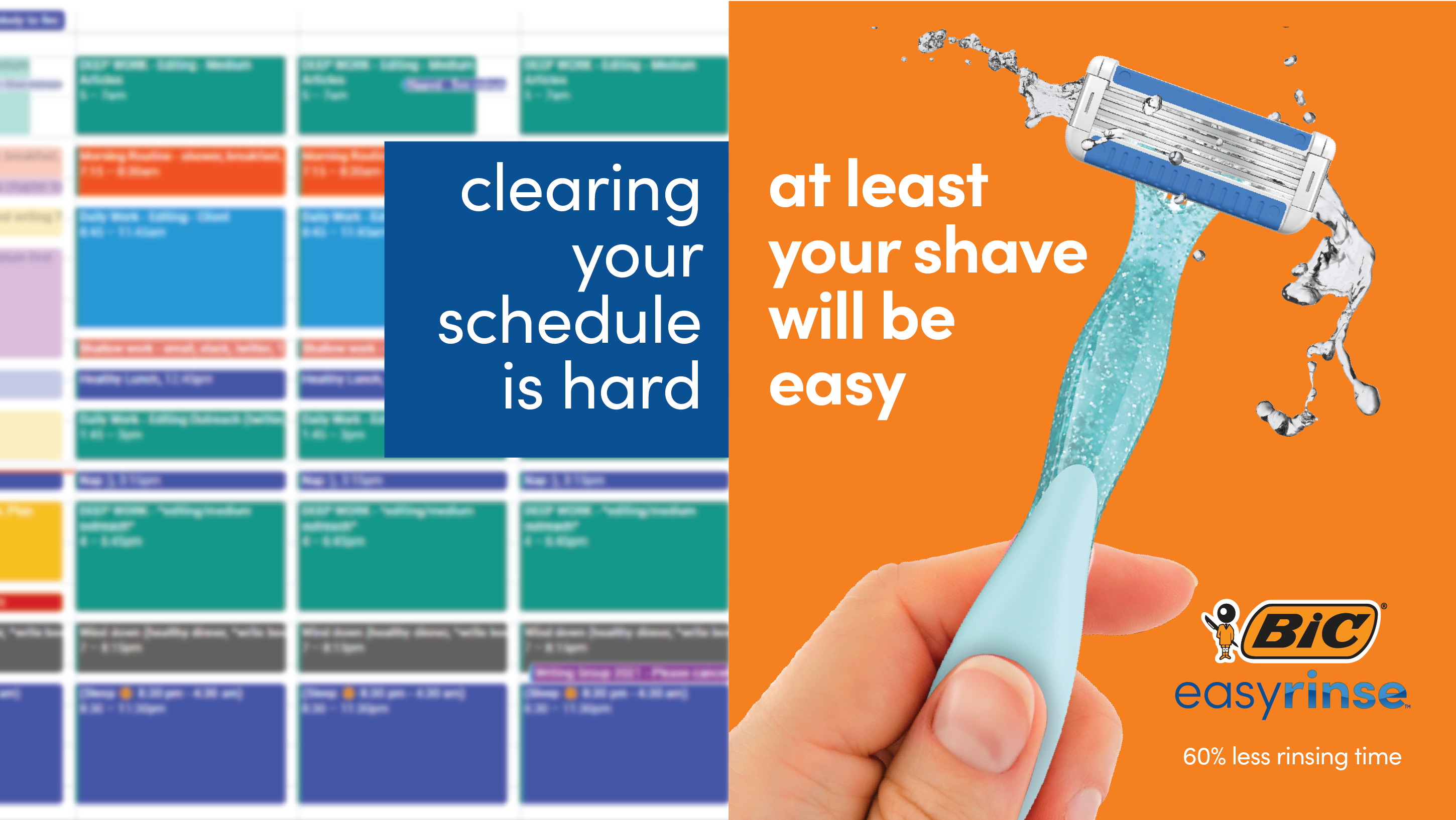 We took the idea that if we could make the ten minutes you spend shaving every morning a little smoother, that can set the tone for your entire day. With new anti-clogging technology we created branding messaging that conveyed just how easy shaving with BIC can be.